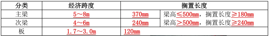 ②梁板式肋形楼板经济跨度、搁置长度总结