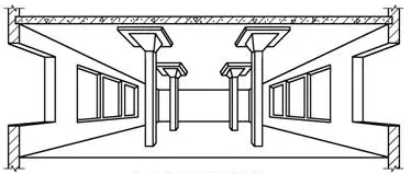 ②当房间的平面形状近似正方形,跨度在10m以内时,常采用这种楼板。具有天棚整齐美观,有利于提高房屋的净空高度等优点,常用于门厅、会议厅等处。