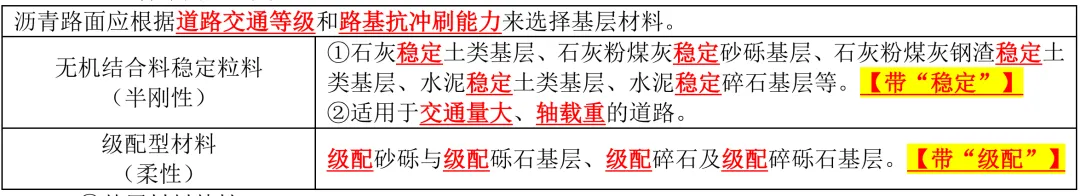 ②根据道路交通等级和路基抗冲刷能力选择基层材料。