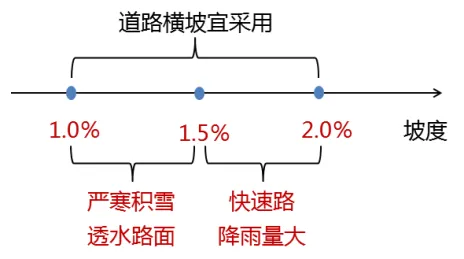 保护性路肩横坡度可比路面横坡度加大1.0%。路肩横向坡度一般应较路面横向坡度大1%。