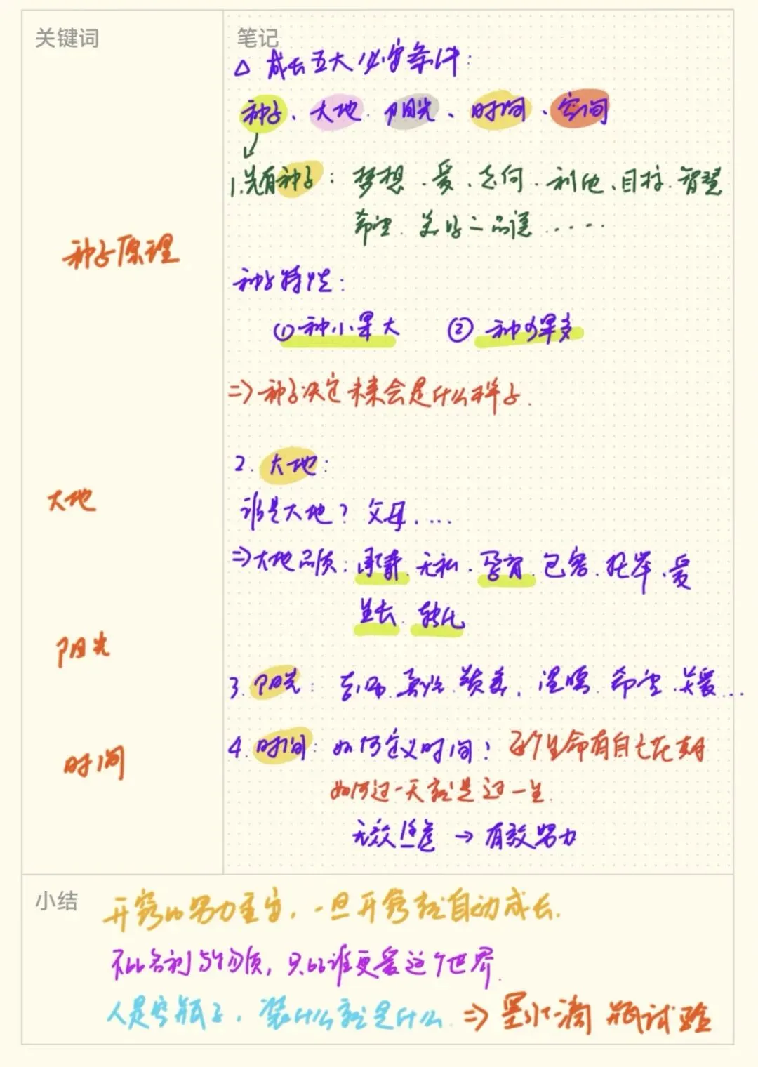 🌈 引领一位古琴孩子的案例:天门山-海-大漠-菜市场坐:收心;放:调频;听:静心,听那些听不见的声音;收:收势。1.学生是可以“管理”老师的。学生的专注、好奇可以把老师带动到一个高昂的状态,学生可以用爱、好学、感恩去影响老师。1.生姜不能重茬种在同一块地,一般要3年以上轮作。通俗说生姜可以用一年吸光土地三年的肥力。人的成长也可以,人可以在学习中去吸收周围环境的力量,通过分享、复讲等。1.用“破相”思维去解决。突破之后,人生进入新的高度。2.我们所有的问题,在这个世界都被其他人成功解决过。2.孩子学习也是如此,自驱力起来了,方法自然就有了。1.学习更重要的是把握规律,而不是学习单纯的知识。1.种子:种子决定了未来的样子,定位自己是楠木的种子。去确认种子,而不是确认自己现在的状态。3.阳光:老师、喜悦、赞美、温暖、希望、关爱...4.时间:每个生命都有自己的花期。如何过好一天就是过一生。