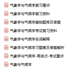 今天分享的资料是「气象学与气候学」电子版+学习笔记+知识点总结+期末考试重点+复习资料+习题集及答案+名词解释+历年真题试卷及答案+题库及答案+复习重点+思考题及参考答案+公式总结+考试重点基础题+知识总结+高清PDF可打印+免费分享!