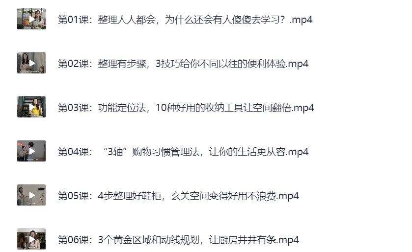 名称:【收纳师资料】高级收纳师学习资料学会整理-收纳师视频学习资料