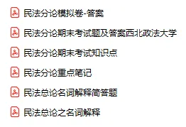 今天分享的资料是「民法分论」电子版+学习笔记+知识点总结+期末考试重点+复习资料+习题集及答案+名词解释+历年真题试卷及答案+题库及答案+复习重点+思考题及参考答案+公式总结+考试重点基础题+知识总结+高清PDF可打印+免费分享!