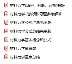 今天分享的资料是「材料力学」电子版+学习笔记+知识点总结+期末考试重点+复习资料+习题集及答案+名词解释+历年真题试卷及答案+题库及答案+复习重点+思考题及参考答案+公式总结+考试重点基础题+知识总结+高清PDF可打印+免费分享!