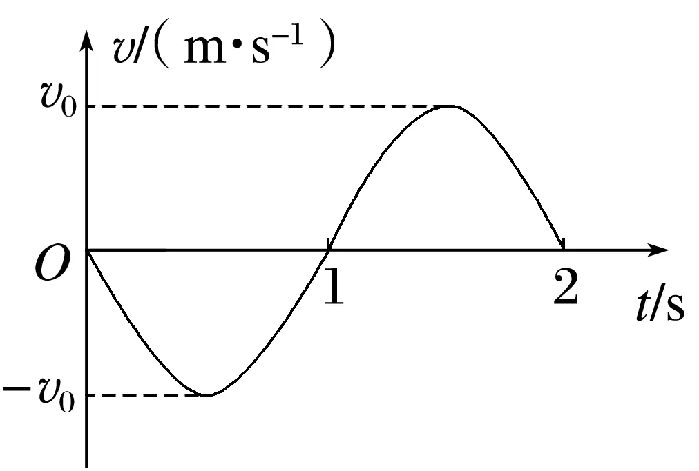 5.一竖直悬挂的弹簧振子,下端装有一记录笔,在竖直面内放置有一记录纸,当振子上下振动时,以速率v水平向左匀速拉动记录纸,记录笔在纸上留下如图所示的图像。记录笔与记录纸之间的摩擦和空气阻力都可忽略不计。y1、y2、x0、2x0为纸上印迹的已知位置坐标,则以下说法正确的是( )