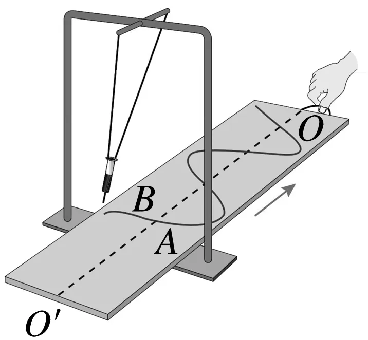 6.(2024·广东高二期中联考)如图所示,某小组同学用细线悬挂一个去掉柱塞的注射器,注射器内装满墨汁。注射器在小角度内摆动过程中(忽略流出墨水对注射器内墨汁减少量的影响),沿着垂直于注射器摆动的方向匀速拖动木板,注射器下端与木板距离始终很小。其中墨迹上A、B两点到OO′的距离均为注射器下端振幅的一半。不计空气阻力,则( )