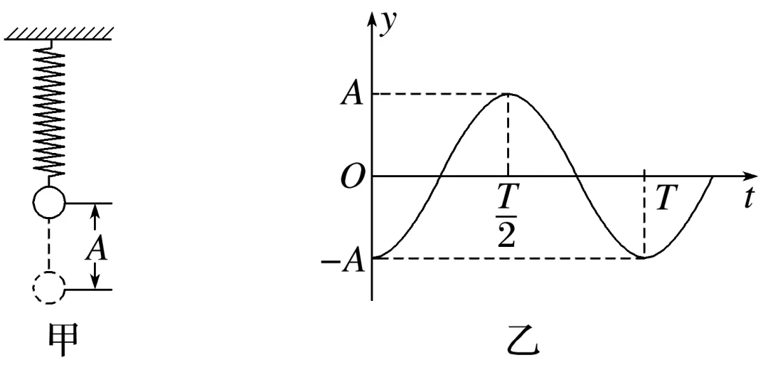 9.(2024·江门市台山一中高二月考)如图所示,一个轻质弹簧下端挂一小球,小球静止。现将小球向下拉动距离A后由静止释放,并开始计时,小球在竖直方向做简谐运动,周期为T。下列说法正确的是( )