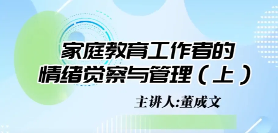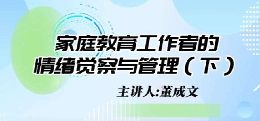 第二十八课时《家庭教育工作者的情绪觉察与管理》。主讲人辽宁省家庭教育学会理事、辽宁师范大学心理学院党委副书记、教授董成文。