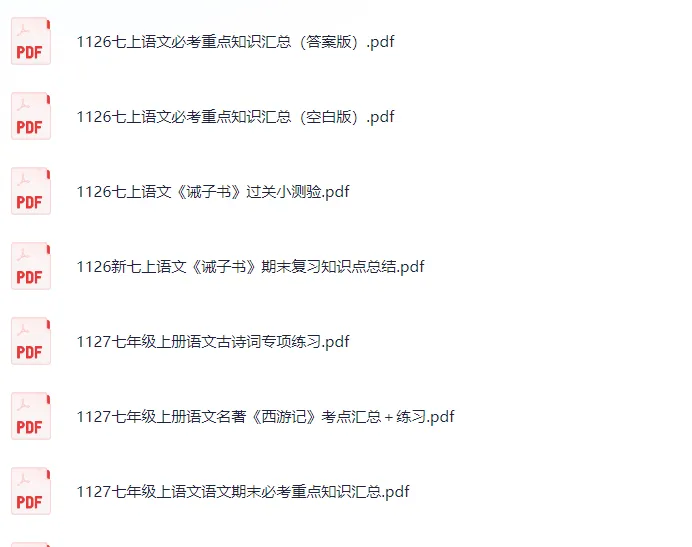 >部编版七上语文最新学习资料更新