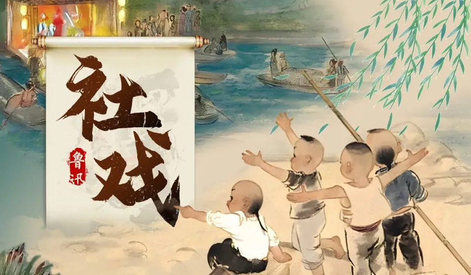 然而我的意思却也并不在乎看翻筋斗。我最愿意看的是一个人蒙了白布,两手在头上捧着一支棒似的蛇头的蛇精,其次是套了黄布衣跳老虎。但是等了许多时都不见,小旦虽然进去了,立刻又出来了一个很老的小生。我有些疲倦了,托桂生买豆浆去。他去了一刻,回来说,"没有。卖豆浆的聋子也回去了。日里倒有,我还喝了两碗呢。现在去舀一瓢水来给你喝罢。"【孩子们对奇幻表演的期待,象征童年对未知世界的好奇与幻想。然而现实却是冗长的唱段与乏味的老旦,形成强烈反差。通过期待与现实的落差,展现童年纯真与成人功利的冲突。】