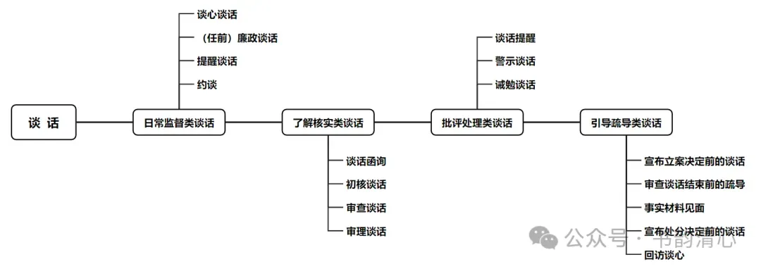 在执纪过程中,谈话经常被纪检机构用来了解核实情况。这类谈话被用作线索处置方式和纪律审查的措施,谈话主体是纪检机构,谈话对象分别是被反映人、被核查人、被审查人、涉案人员及相关知情人。
