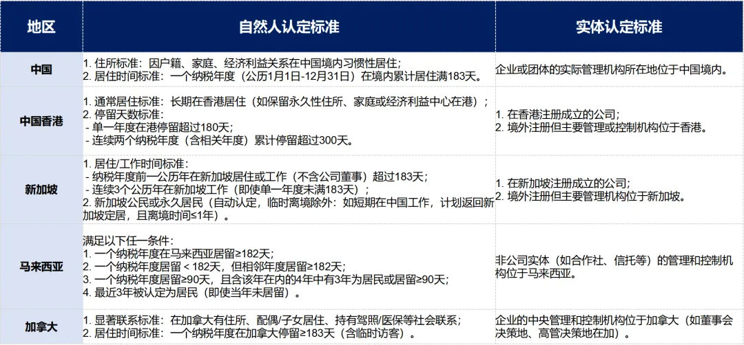- 管理所在地(Place of Management):对于公司等实体而言,其"中央管理和控制"所在地是判断其居民身份的核心标准。