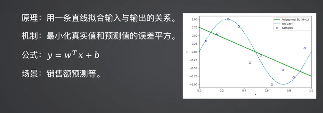 线性回归是回归任务的“基线算法”,核心是拟合输入特征与输出数值的线性关系(y = wx + b),权重系数可直接反映特征对结果的影响程度。