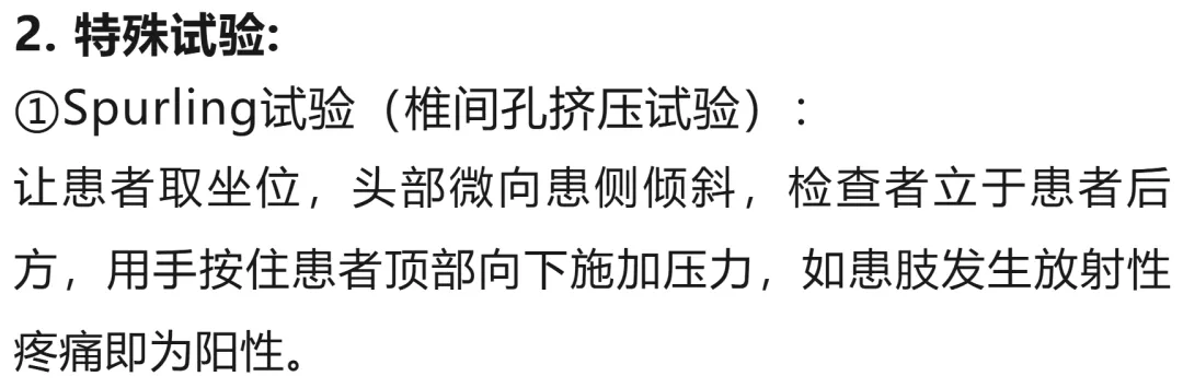 · 特殊试验:Spurling试验、臂丛牵拉试验等