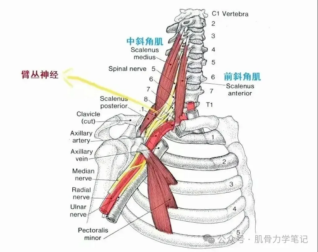 ④颈部前斜角肌痉挛:压迫臂丛神经和锁骨下动脉