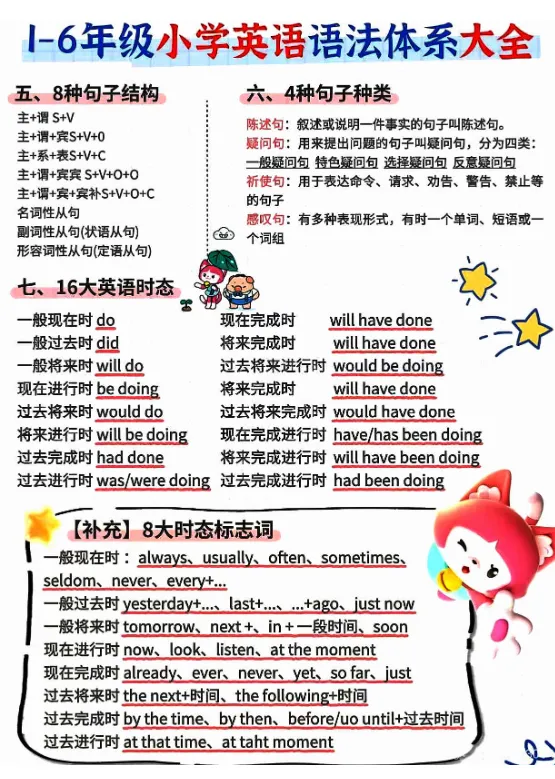 赶紧保存!小学英语1~6年级超全学习资料-全版本通用(语法 八大时态 固定搭配 完形填空 作文等等)【免费获取】