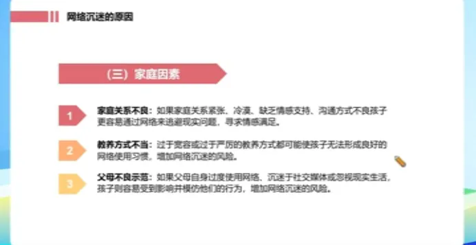 今天学习第二十九、三十、三十一课时,《网络沉迷问题指导》《 校园欺凌问题指导 》《学习困难指导》,主讲人分别是辽宁省家庭教育学会会员、沈阳领域集团家庭教育研究院院长、高级家庭教育指导师何胜强;