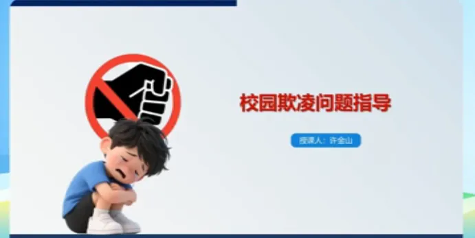 第三十课时《校园欺凌问题指导》,主讲人辽宁省家庭教育学会会员、沈阳领域集团家庭教育研究院副院长、国家三级心理咨询师许金山。