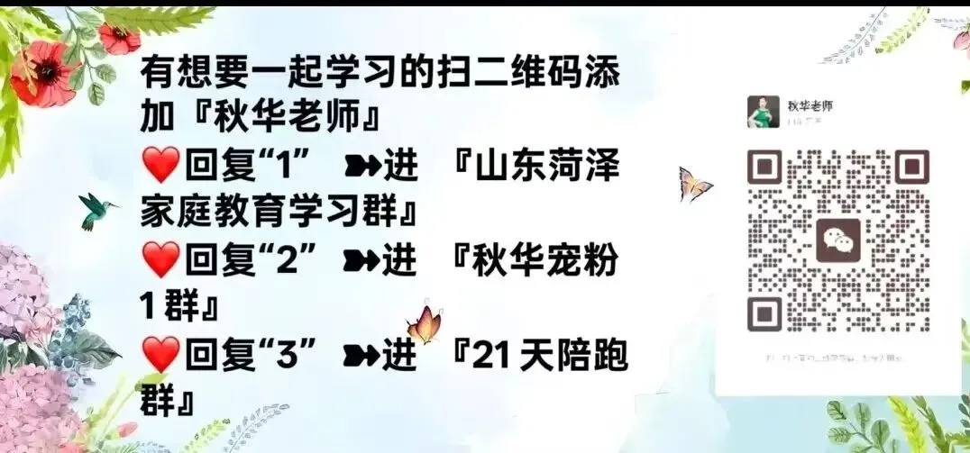 想要一起学习的扫二维码添加『秋华老师』❤回复“1” ➽进 『菏泽家庭教育学习群』❤回复“2” ➽进 『秋华宠粉福利群』❤回复“3” ➽进 『21天陪跑群』❤回复“6” ➽ 『三个群都进』每个清晨都是崭新的起点,卸下昨日的疲惫,拥抱今日的无限可能。[太阳]