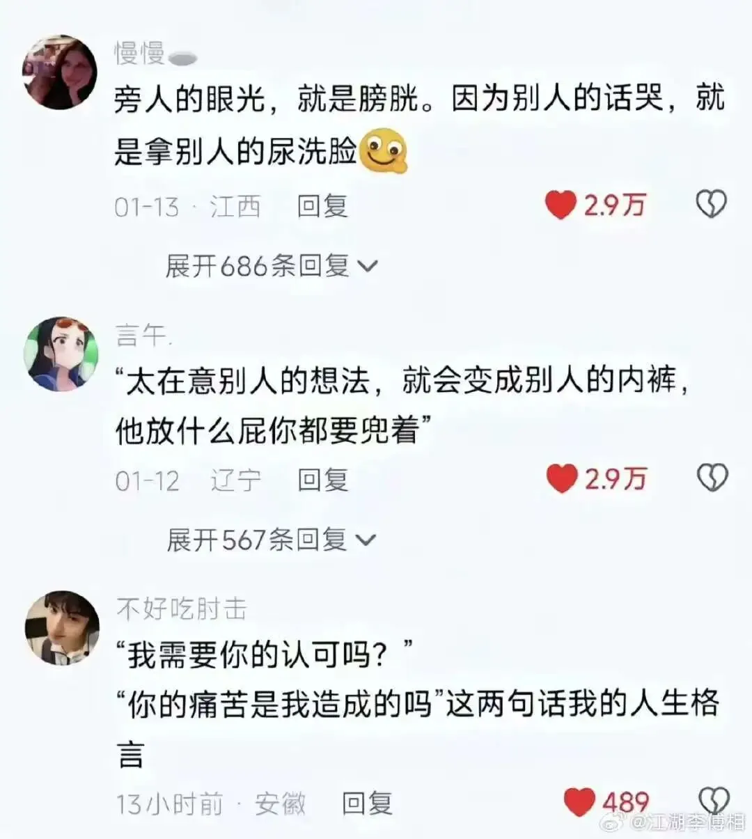 表面上是关心你,实际上是为了衡量你的价值。说的多了,他心里会嫉妒你;说的少了,他心里会笑话你。