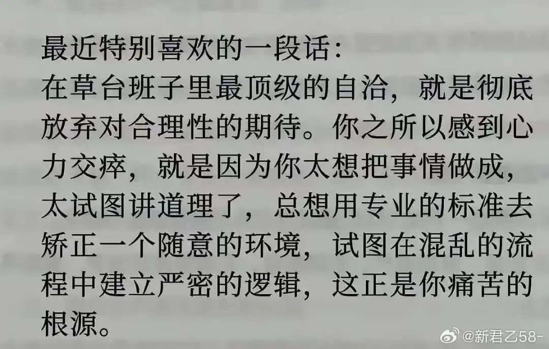 绝大多数人的一生,都是随波逐流的,活的很潦草。知识是匮乏的,人生是匮乏的,没有追求,没有热爱,干什么都行尸走肉。年轻的时候什么样,现在思想还是什么样。