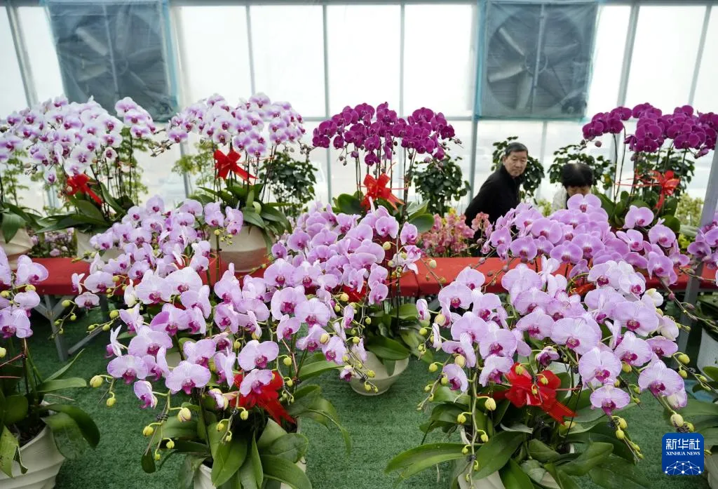 图为市民在河北省滦州市一家花卉生产基地温室内挑选鲜花。新华社记者 牟宇 摄