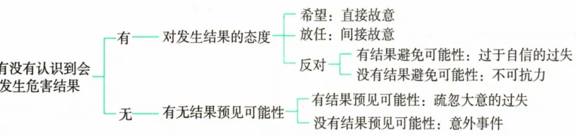 1.有无结果避免可能性:过于自信的过失,有避免可能性;不可抗力,无避免可能性。