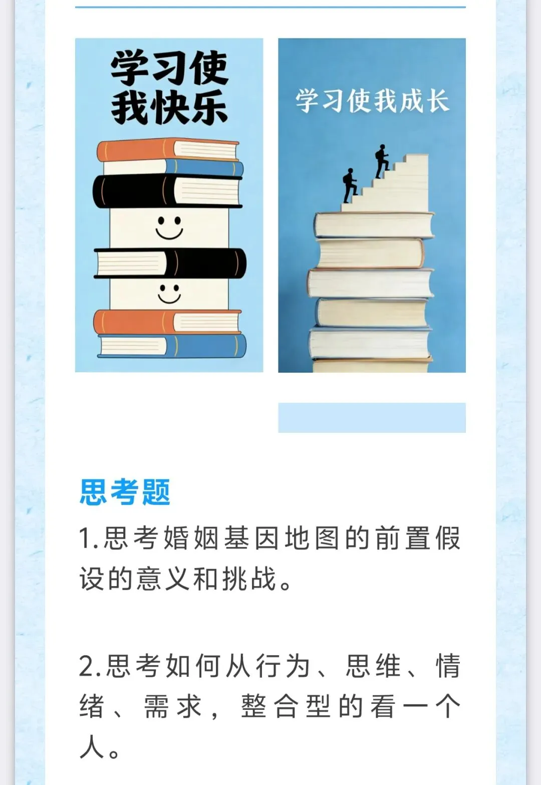 大家好,我是Jenlyn。我正在学习《婚因有道》初级课程。我期待成为一名有专业,有能力,有温度的婚姻家庭咨询师。希望将来我能够用专业服务社会,用所学帮助更多的人改善婚姻质量,实现幸福生活。也希望自己能够成为家庭的守望者,成为他人的祝福。这是我的第九篇学习笔记,分享给大家,希望对您有帮助或启发。案例分析——婚外情