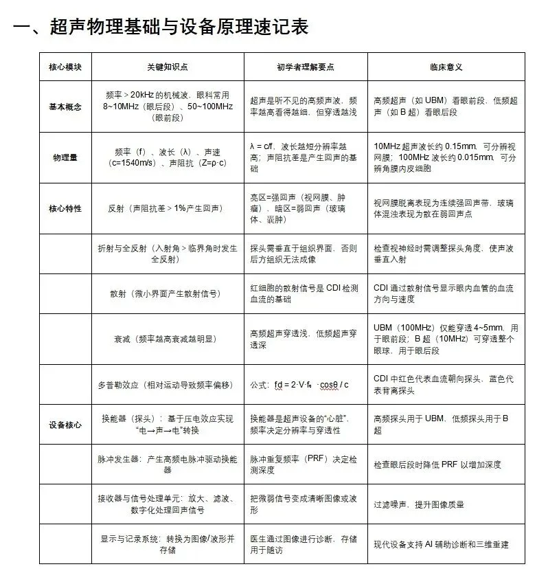 1.逻辑关联:第一节是技术史(知其然),第二节是原理支撑(知其所以然),两者共同构成眼科超声的完整知识体系。
