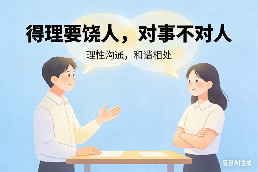 所以处理事情的时候我们要得理要饶人,对事不对人。 因为我们是来解决问题的, 不是来批评人的。