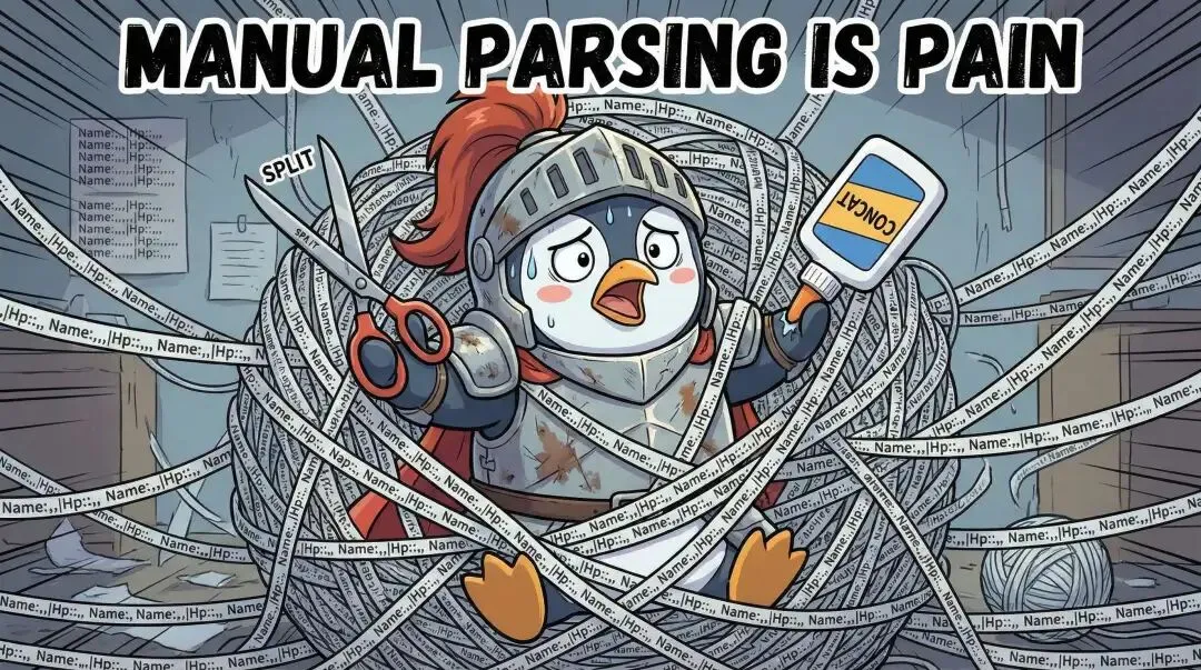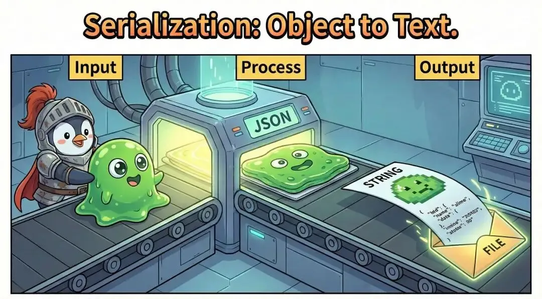 瓜瓜(Guagua):“停停停。你这是石器时代的数据管理。 用魔法压缩机吧——JSON 序列化。”