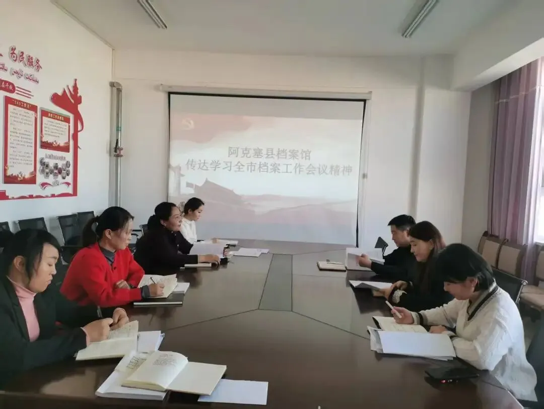 近日,阿克塞县档案馆第一时间召开专题会议,传达学习国家、省、市档案局长馆长会议精神,结合民族地区档案工作实际研讨部署落实举措。会议强调,要坚持档案工作姓党,切实把会议部署转化为工作实效,以高质量档案服务助力县域经济社会发展。