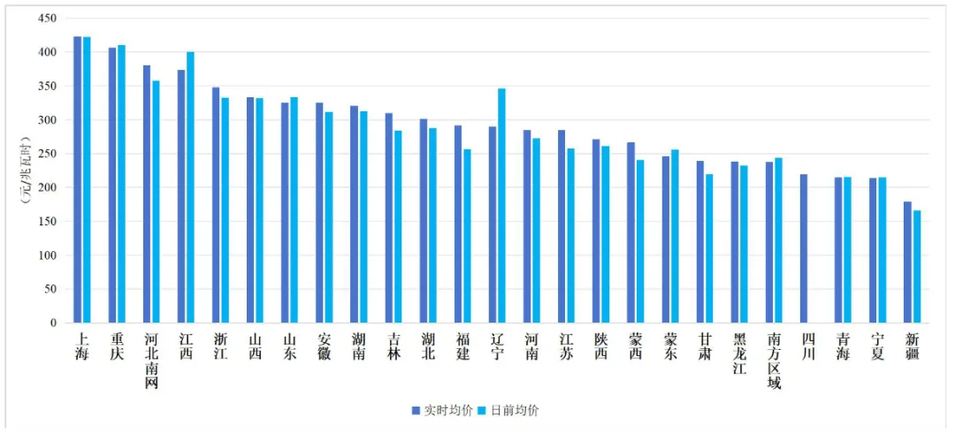 2025年,全国电力现货市场分省维度则呈现显著区域分化特征。上海、浙江等东部负荷中心,因用电负荷密集、外受电依赖度较高,实时均价相对偏高,普遍维持在330元/兆瓦时以上;甘肃、青海、宁夏、新疆等西部新能源高装机地区,电力供需宽松程度加深,实时均价多处于250元/兆瓦时以下;湖北、河南等中部地区则处于中间区间,实时均价大多在280-320元/兆瓦时之间。