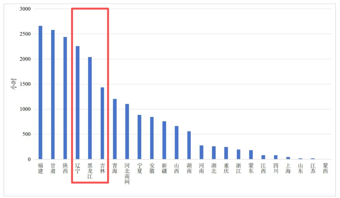 异常价格区间:蒙东价格四分位数触及0值,黑龙江四分位数也接近0,表明两省靠近地板价的电价时段占比较高,地板价设计值偏高。