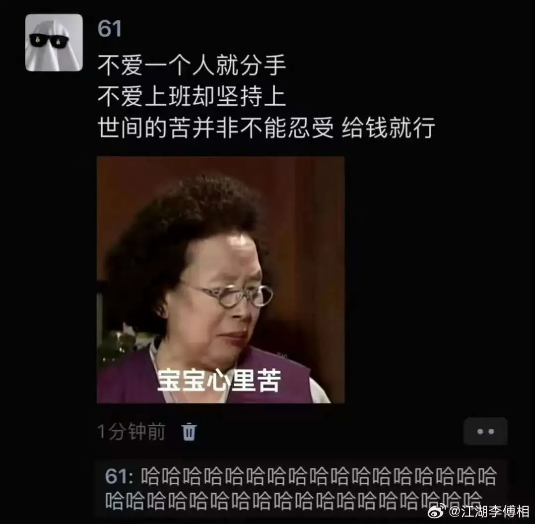 生育,性,情绪价值,照顾小孩,保姆,清洁工护工,采购,教培。这9样单独放在市场上,每样都是高工资高价值。可是放在婚姻就是免费。