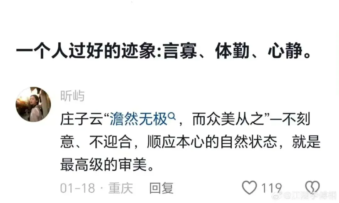 太阳照耀、温暖万物,却并不求一花一木的回报。一个人能量够了,发光发热不过是本性而已。这样的人其实一直在付出,却没有付出感;不需要索取,却源源收获着人们自发的热爱与礼赞。