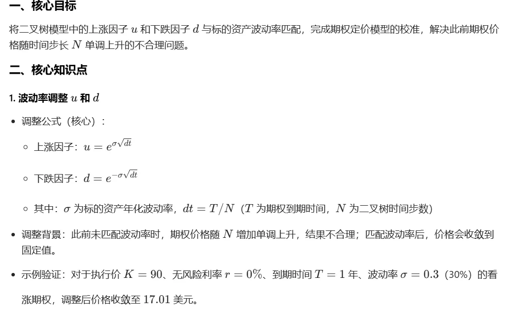 历史波动率:基于标的资产过往价格(如过去 1 年)计算优点:易计算;缺点:依赖历史数据,无法反映未来预期隐含波动率:从交易所上市期权的市场价格中反推(通过定价公式求解 σ)优点:反映市场对未来波动率的预期;缺点:需依赖活跃的期权交易价格,计算更复杂