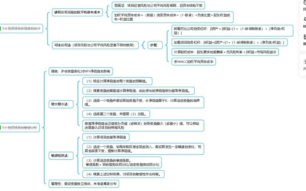 2.9注会财管学习笔记:投资项目折现率的估计与敏感分析