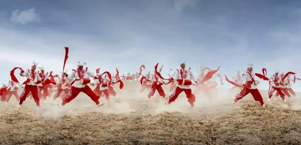 “安塞腰鼓”是陕北高原特有的地域文化现象,也是陕北人精神风貌的象征和符号,而这一切均与陕北古代的历史有关。陕北高原是连接中原农业民族和草原游牧民族的重要通道,自古以来就是边关要地。可以这样说,“安塞腰鼓”既是古代激励边关将士冲锋杀敌、浴血奋战的号角,也是将士们征战凯旋的欢迎曲。它气势磅礴,它置死地而后生,它充满激情与力量,它是生命的舞蹈与狂欢……古代战争擂鼓鸣金的场面,永远地消失了。然而,这种彰显激情和力量的仪式,却深深地根植于陕北这块古老的土地上。陕北的乡间,腰鼓成为一种娱乐形式,于浪漫中宣泄生命的激情,于诗意中追求永恒的精神力量。进一步说,某种意义上,“安塞腰鼓”所释放出的能量,不仅仅是陕北这块古老的黄土地的地域文化信息,更重要的是它已经成为中华民族坚毅不屈、意气风发、蓬勃向上、积极进取的精神象征。