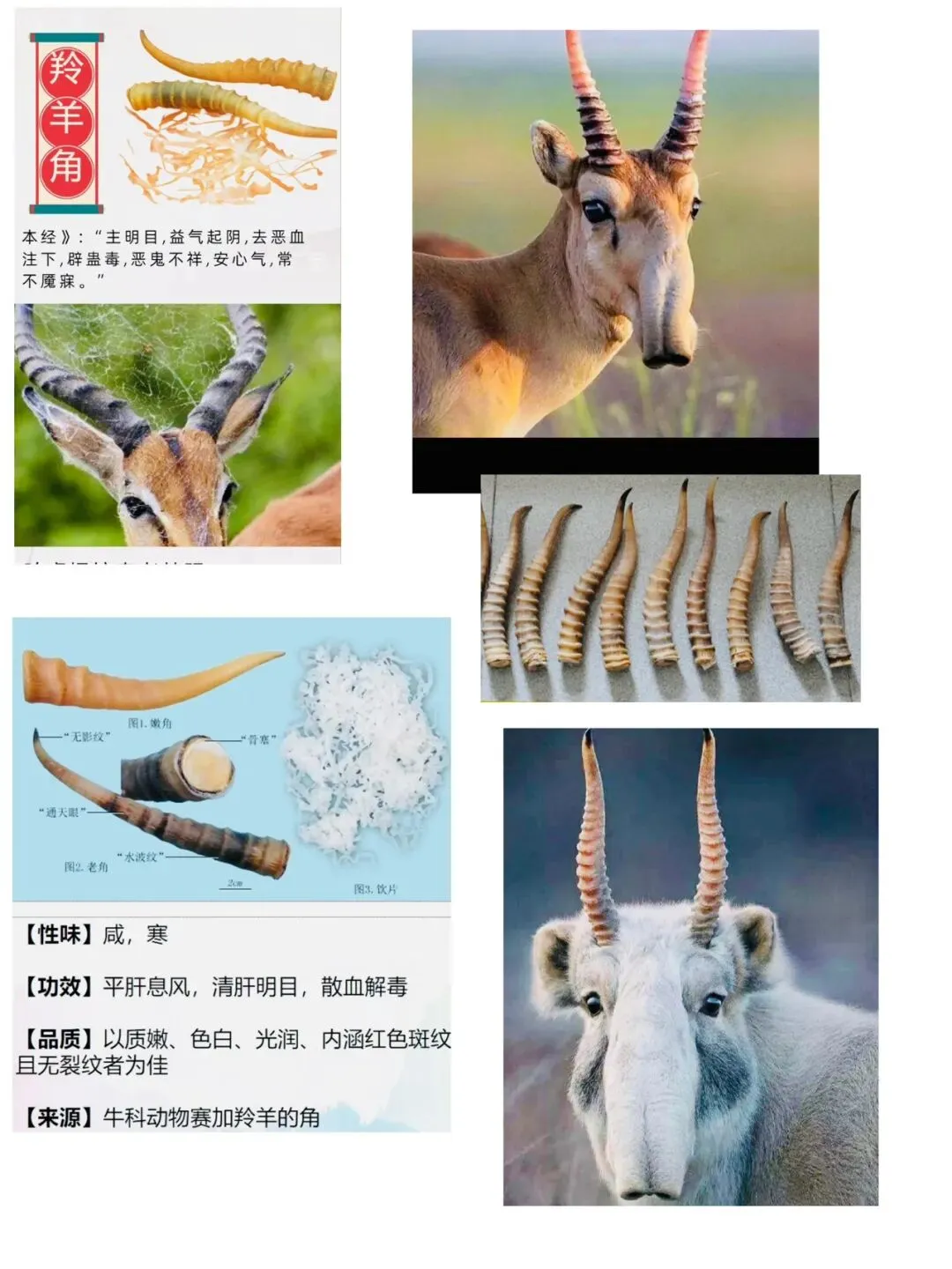 4.羚羊角:“握、看、抽、照”四步法——握之合把、看环脊、抽骨塞、照通天眼,一步都不能少,以防伪品(如黄羊角、山羊角)。