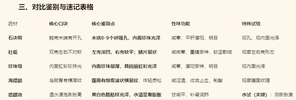 (4)联想记忆:为名贵药材,环脊、合把、骨塞、通天眼是其“四大防伪标记”,缺一不可。其性咸寒质重,善清肝热、息肝风,为治高热神昏、惊痫抽搐之要药。
