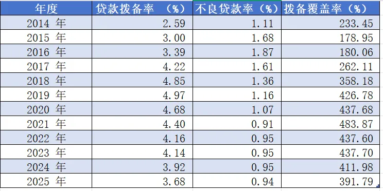 贷款拨备率=贷款损失准备/贷款和垫款总额