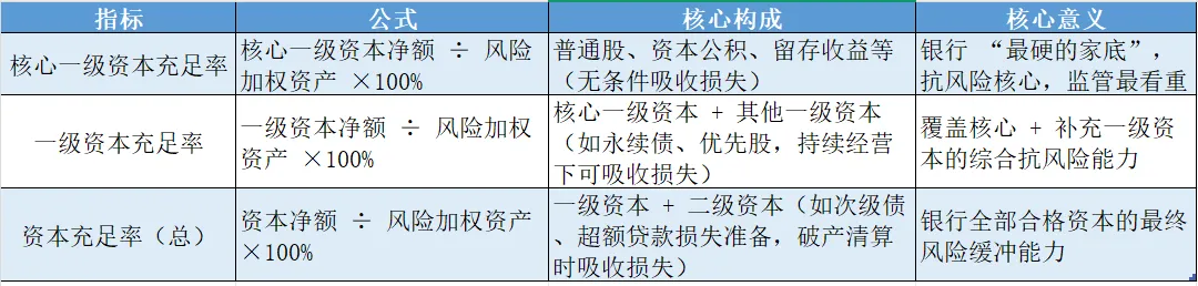 资本充足率是银行 “家底能扛多少风险” 的核心指标,核心逻辑是