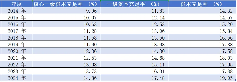 资本充足率越高,风险缓冲越强,未来计提损失、核销不良的空间越大,利润更稳,分红可持续性更强。