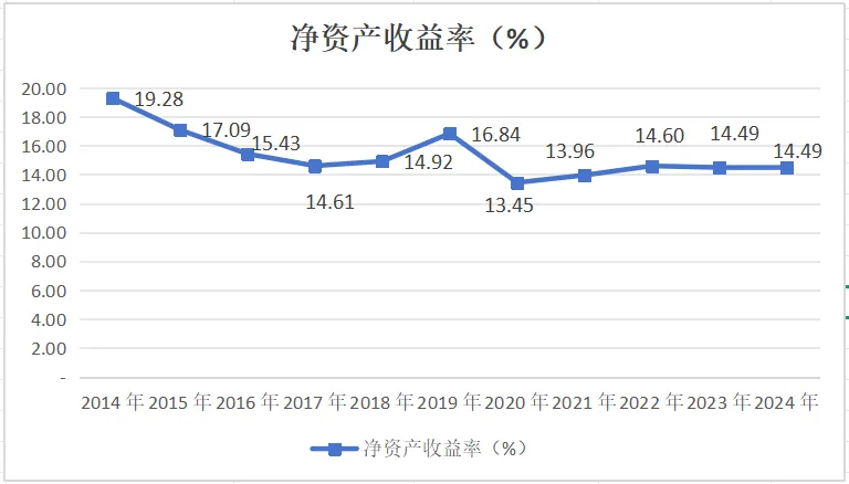 招商银行的净资产收益率也从2014年的19.28%下降到14.49%,如果未来国家继续降息,估计还会下降。