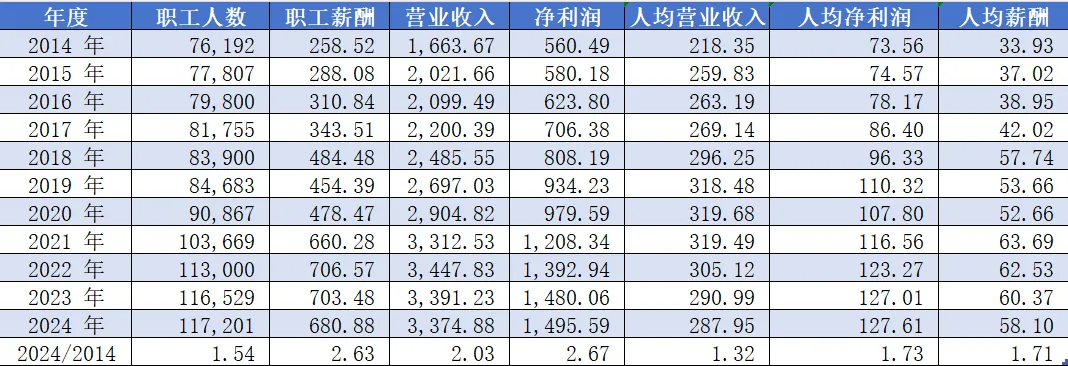 2024年招商银行员工11.72万,人均净利润127万,人均薪酬(含社保公积金等)58万,看来做