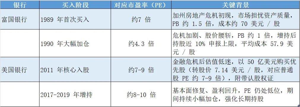 巴菲特主要投资了富国银行和至今还重仓持有美国银行,看下他买入的价格和时点吧。