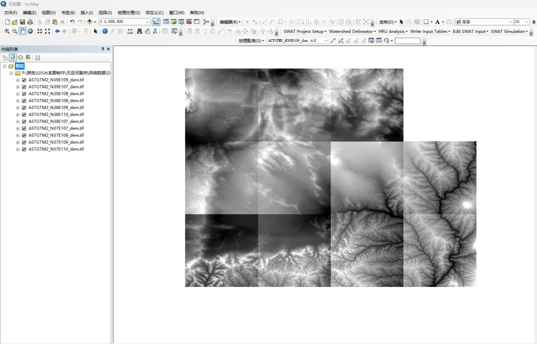 按照无定河的流域面积下载DEM数据(流域面积的提取和DEM数据的下载方式可见往期文章介绍),天地图官网下载的数据如下图1所示。