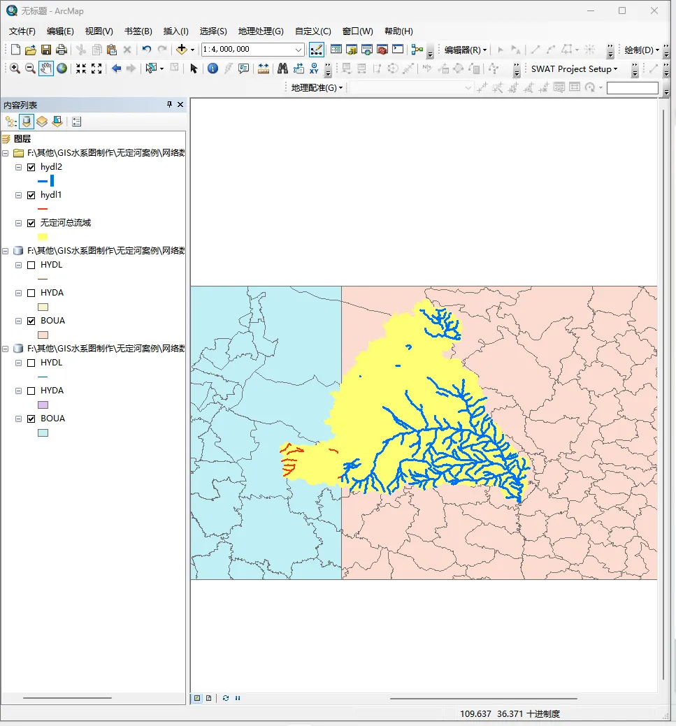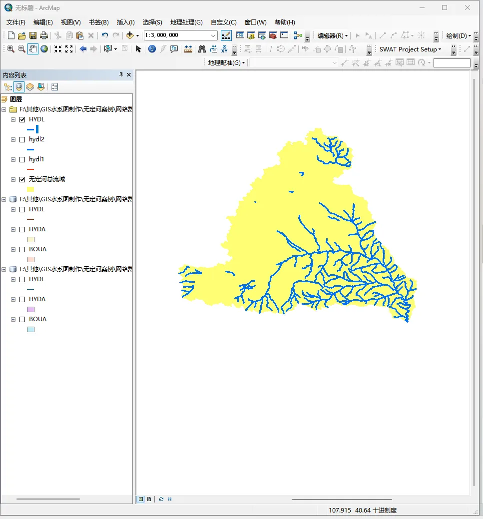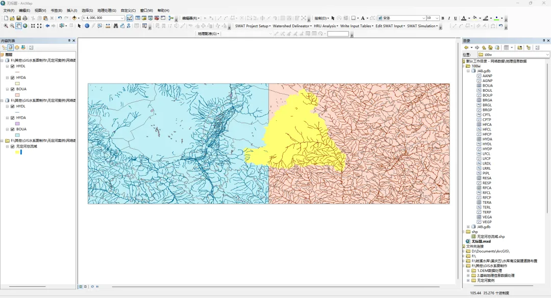 本套ArcGIS基础操作方法具有通用性,适用于大部分情况。其中,栅格数据的精细化处理为流域地形、地表覆盖特征的精准呈现奠定基础,矢量数据的规范化加工则保障了水系要素等地理信息的准确性与完整性,二者的协同处理是制作符合水利行业标准图纸的关键。